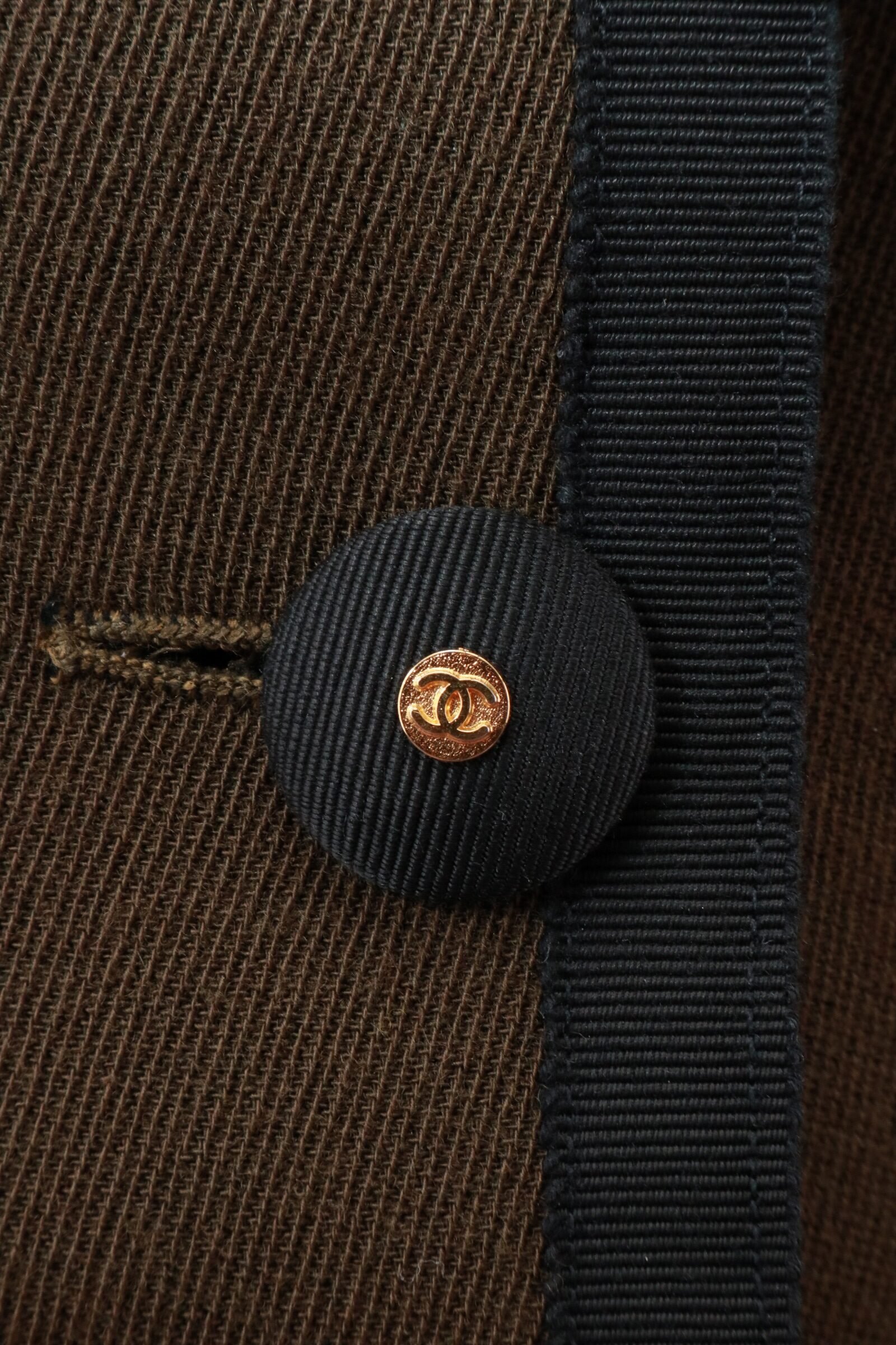 Signature Chanel covered buttons with gold CC medallion centers