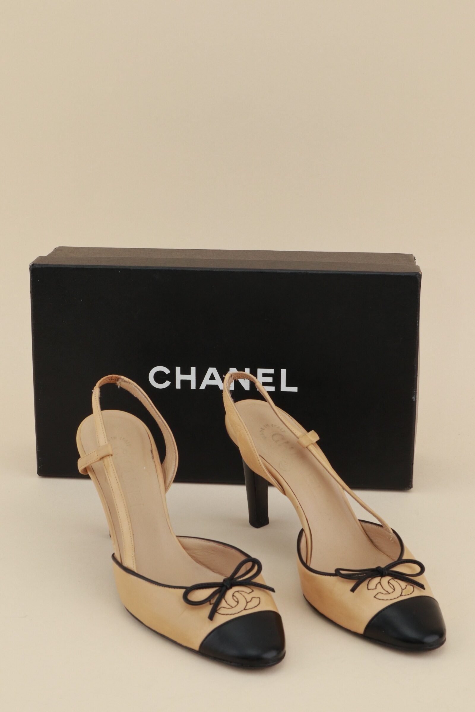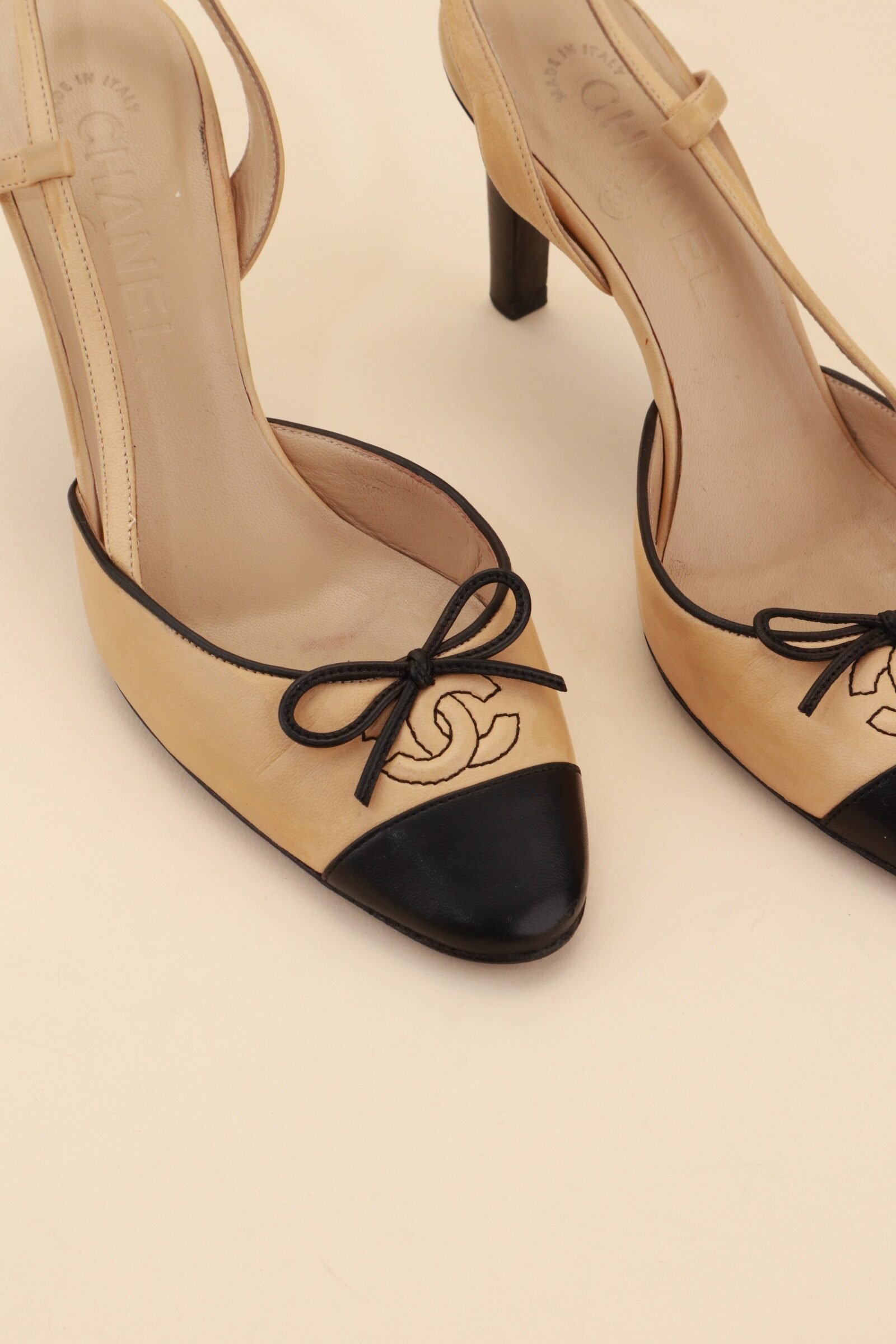 Vintage Chanel Slingback Pumps – Beige & Black