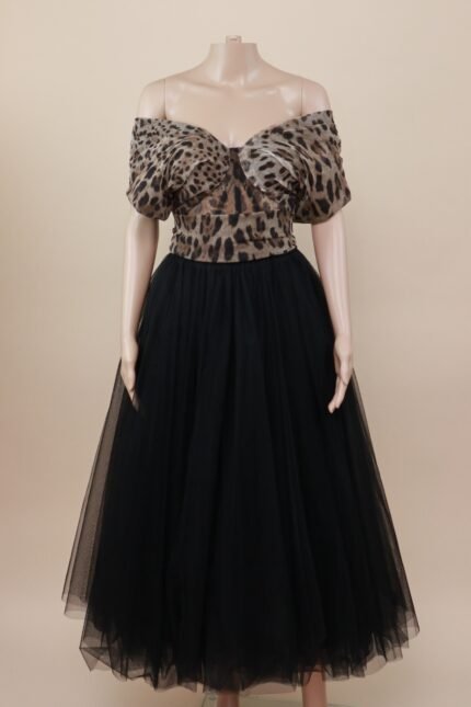 Dolce & Gabbana Leopard Tulle Off-Shoulder Gown – IT 40