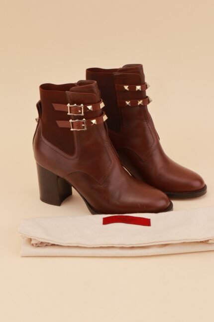 Valentino Garavani Brown Rockstud Ankle Boots – Size 36